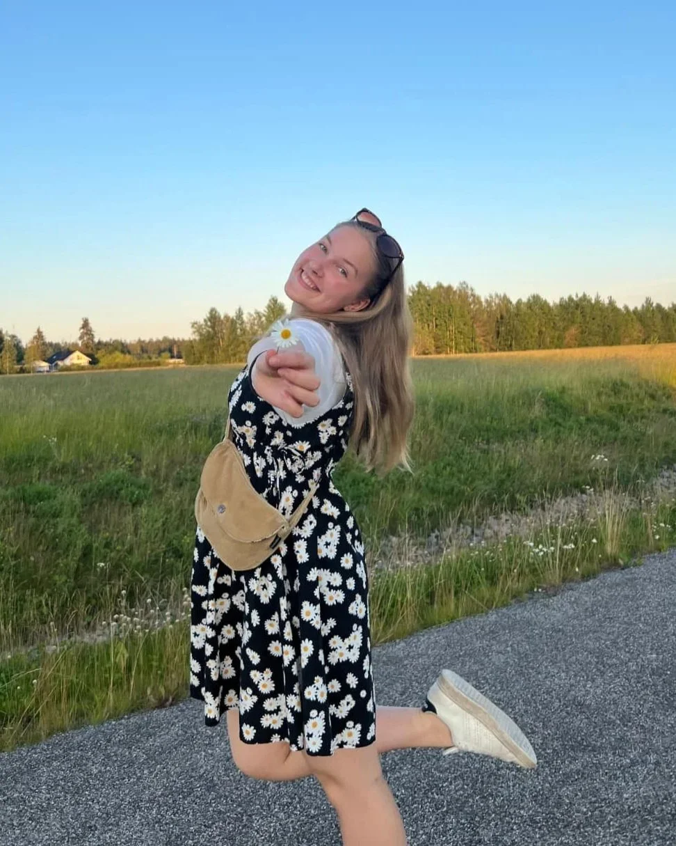 Luonnossa viihtyvä ja kitaraa soittava nuori nainen kuvailee aina pitäneensä itseään introverttinä. “Täällä huomasinkin, kuinka paljon tykkään olla ja keskustella ihmisten kanssa - en olisi koskaan uskonut sitä!”, hän ihastelee sujuvalla suomen kielellä. “Uskon sen johtuvan siitä, että täällä oppi nopeasti tuntemaan muut syvällisellä tasolla, jolloin yhdessäolo on helppoa.”